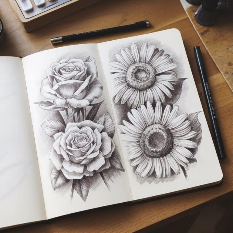 Flowers really are endlessly drawable — there’s something here for every mood, every skill level, and every amount of time you have. Thirty seconds for a tiny daisy doodle in the margin of your notebook. An afternoon for a detailed botanical rose study. Whatever you reach for, just start. The pencil on the paper is always the hardest part.