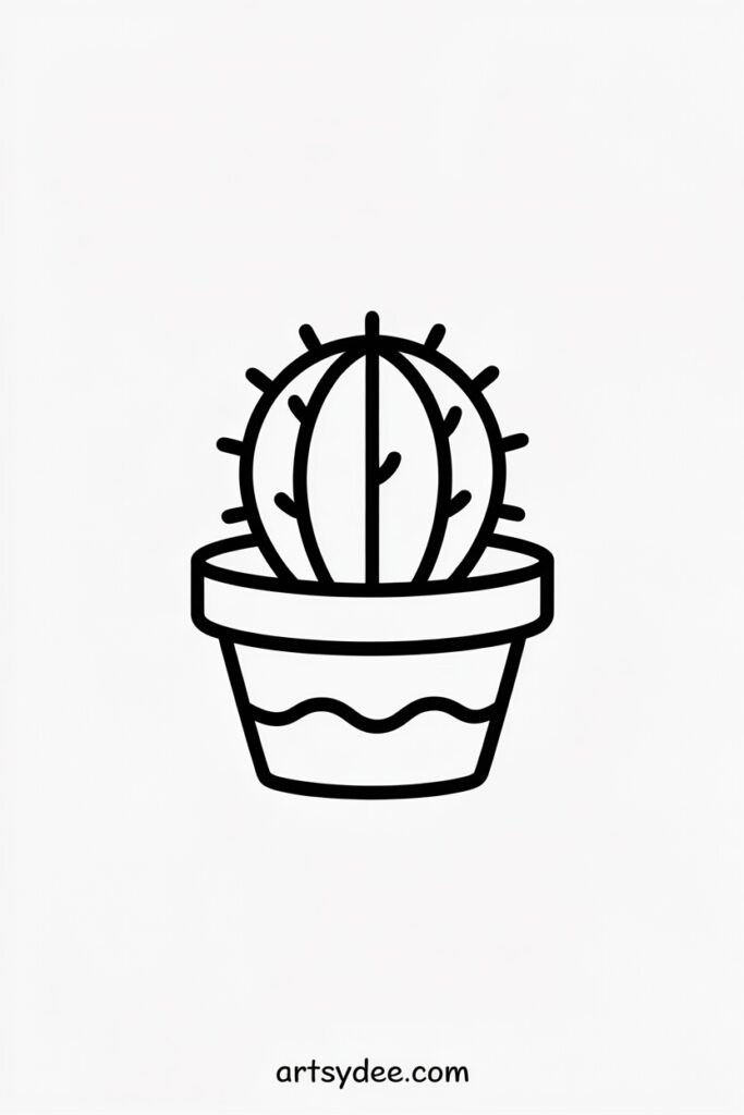 30. Simple Cactus – Green oval shapes with simple line patterns for spines, set in a cute pot.