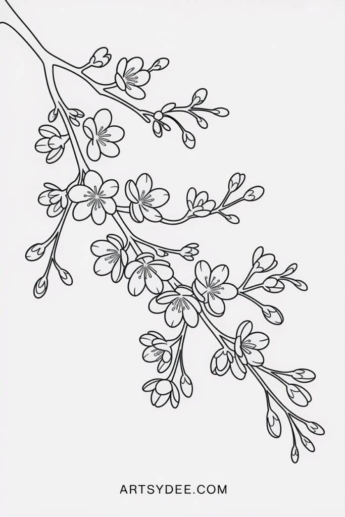 Cherry blossoms have a soft, romantic quality that’s perfect for Valentine’s art. Paint a dark branch first, let it dry, then add clusters of five-petaled pink blossoms. A few fallen petals drifting down adds movement. This design looks delicate and detailed but is actually quite simple when you break it down.