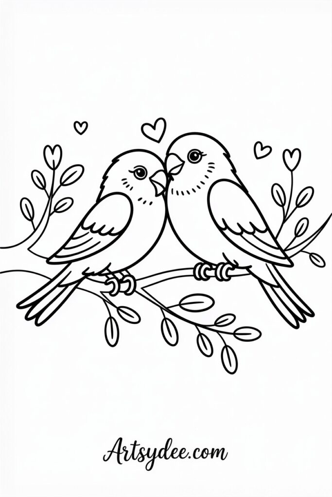 Two little birds sitting together on a branch — bonus points if their beaks touch to form a heart shape. This cute Valentine’s painting works beautifully in realistic or cartoon style. Keep the birds simple (rounded body, small wing, beak, and eye) and let the composition do the emotional heavy lifting.
