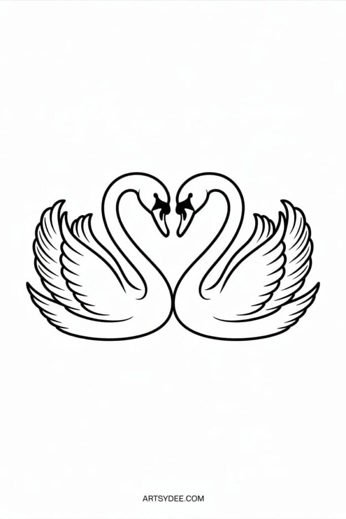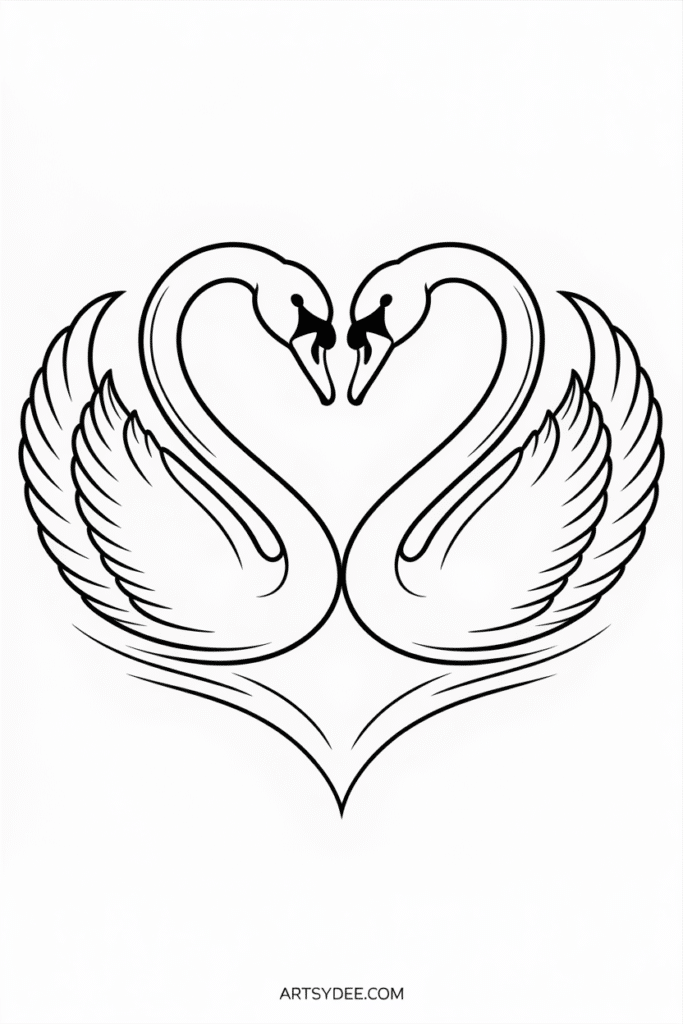 Two swans facing each other naturally create a heart shape with their necks. Paint them on calm water with a soft sunset background. Swans are elegant but surprisingly simple to paint — they’re essentially a curved neck attached to an oval body. The reflection in the water adds depth without much extra effort.