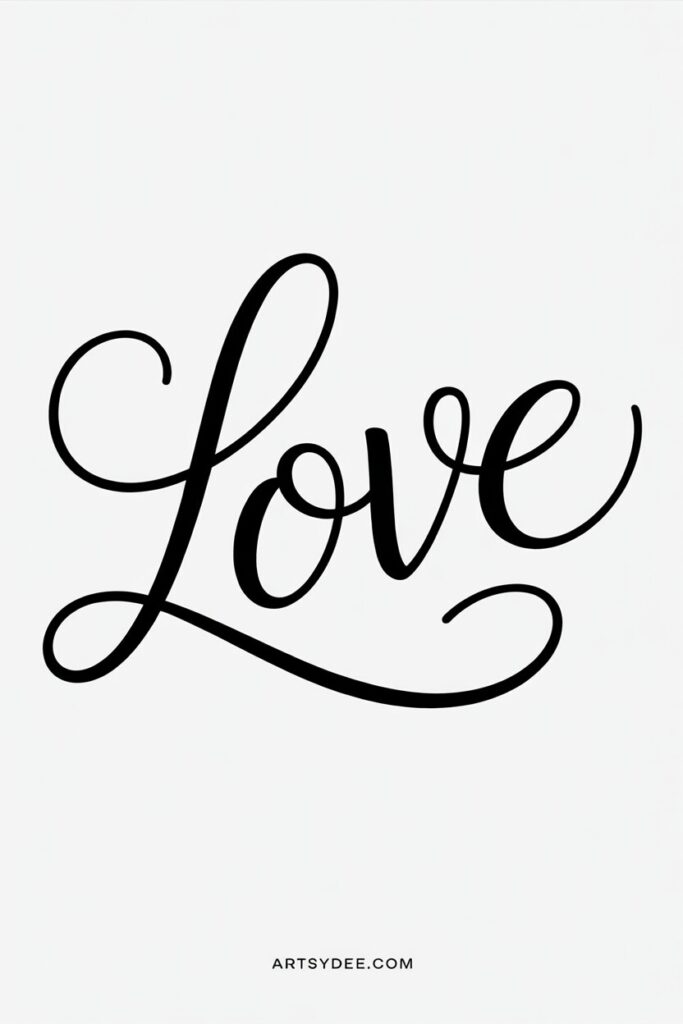 Paint a soft background, then add the word “Love” in elegant script. You can freehand it, trace from my templates, or even use a stencil. Metallic gold or rose gold paint on blush pink looks stunning and surprisingly professional.