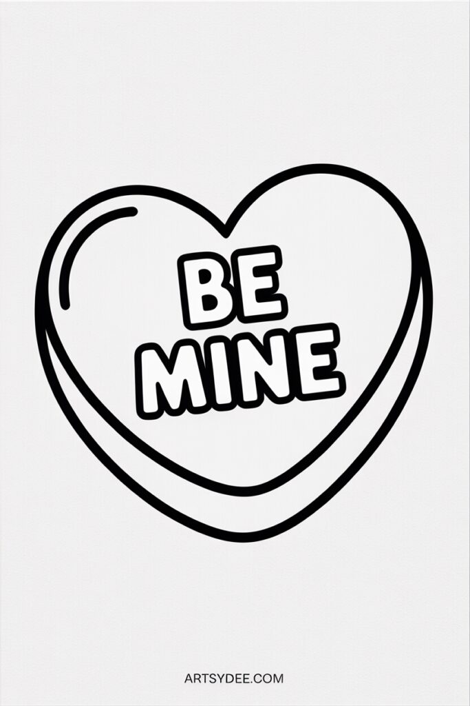 Paint those classic candy hearts with messages like “Be Mine,” “XOXO,” and “Love You.” The retro pastel colors (pink, yellow, purple, green) look charming scattered across a canvas. Write the messages in simple block letters — imperfect handwriting adds to the nostalgic charm.
